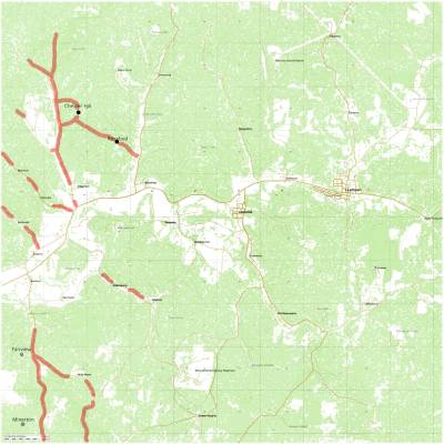 - Adding isolated houses, farms, barns along north and south Tier 1 roads (Red lines)